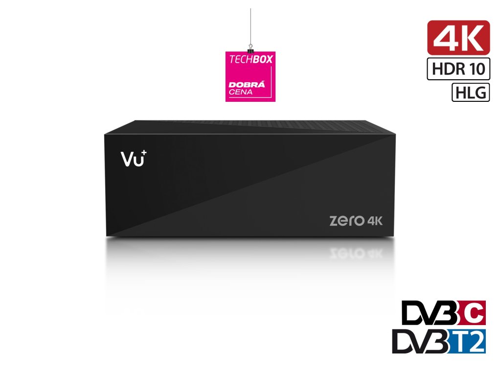 VU + Zero 4K je cenově nejdostupnější pozemní a kabelový přijímač s UHD rozlišením (4K) z dílny VU +. Zařízení nabízí tuner DVB-T2 / DVB-C a je proto připraven na budoucnost vysílání i v této normě. Digitální pozemní a kabelový přijímač pro programy UHD a HD TV a rozhlasové programy. Obsahuje jednu čtečku karet a také CI slot pro vložení dekódovacího modulu. Srdcem přijímače je procesor ARM DualCore s výkonem 2x 1500 MHz. Flash paměť má úctyhodných 4 GB eMMC a operační paměť RAM 2GB DDR4. Na zadní straně nechybí ethernet port, HDMI 2.0, USB port USB 2.0 a port pro připojení externího IR čidla. Možnost doložení externího PVR Kitu pro nahrávání na úložiště HDD.Konektory: