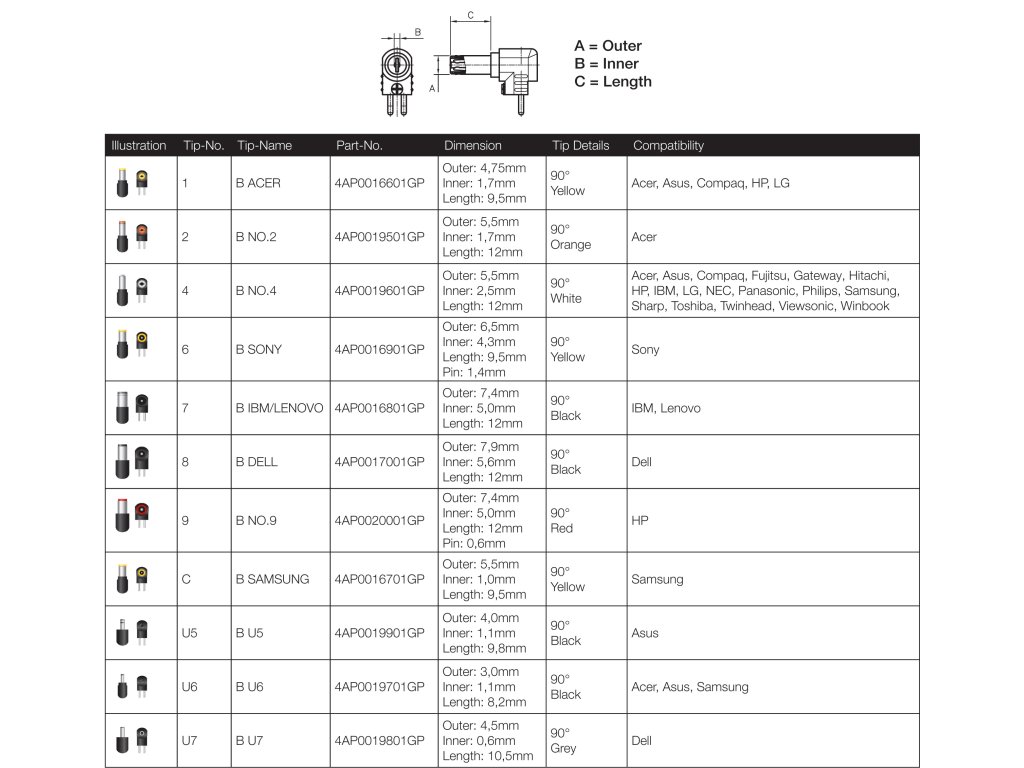 FSP se zajímá a produkuje ekologicky šetrné výrobky. V tomto případě tak nabízí jednotlivé koncovky pro své ekologicky šetrné napájecí adaptéry FSP/Fortron. Je to ta nejlepší volba, pokud potřebujete pouze jednu nebo několik konkrétních koncovek.* vyměnitelná koncovka pro adaptéry FSP/Fortron
