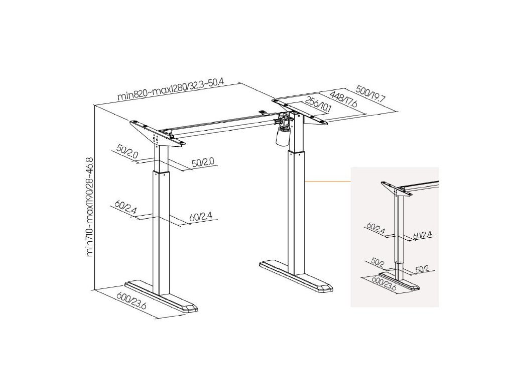 Výškově stavitelná stolová podnož Brateck S03-22DE 1 motor rozsah 710-1190 mm nosnost 80 kg