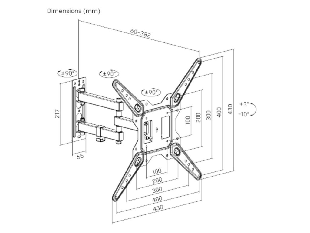 • Výsuvná konstrukce s možností stranového natočení v rozsahu +90°~-90°.