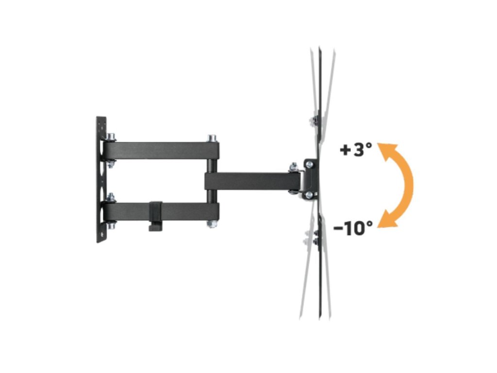 • Volně sklopitelná konstrukce pro jednoduchou změnu náklonu TV v úhlu +3°~-10°.