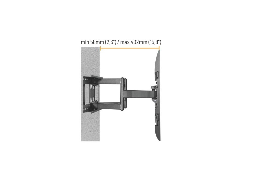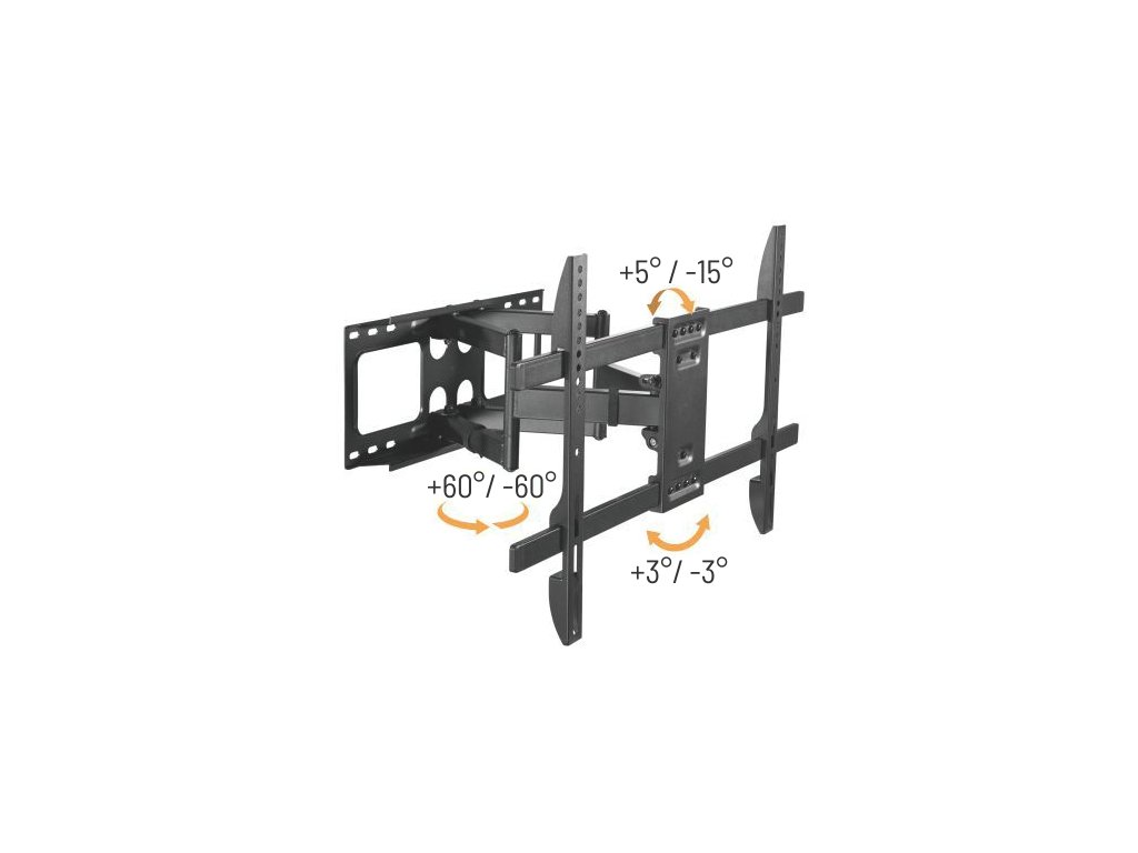 Výsuvný nástěnný držák LPA69-466 je určen pro instalaci TV s plochou obrazovkou s úhlopříčkami od 37“ do 80“. Jeho největší přednostní je robustní výsuvná heavy-duty konstrukce, díky níž unese TV o hmotnosti až 60 kg a zároveň umožňuje nastavit vzdálenost TV od stěny v rozsahu 58 mm až 402 mm, samozřejmostí je pak také velký rozsah polohování. Držák umožňuje snadné naklápění TV v rozsahu +5°~-15°, natočení do stran v rozsahu +60°~-60° a rotaci v rozsahu +3°~-3°, což maximalizuje flexibilitu sledování z libovolného místa v místnosti. Integrovaná svorka na kabely udržuje kabely uspořádané a chráněné.Hlavní vlastnosti: