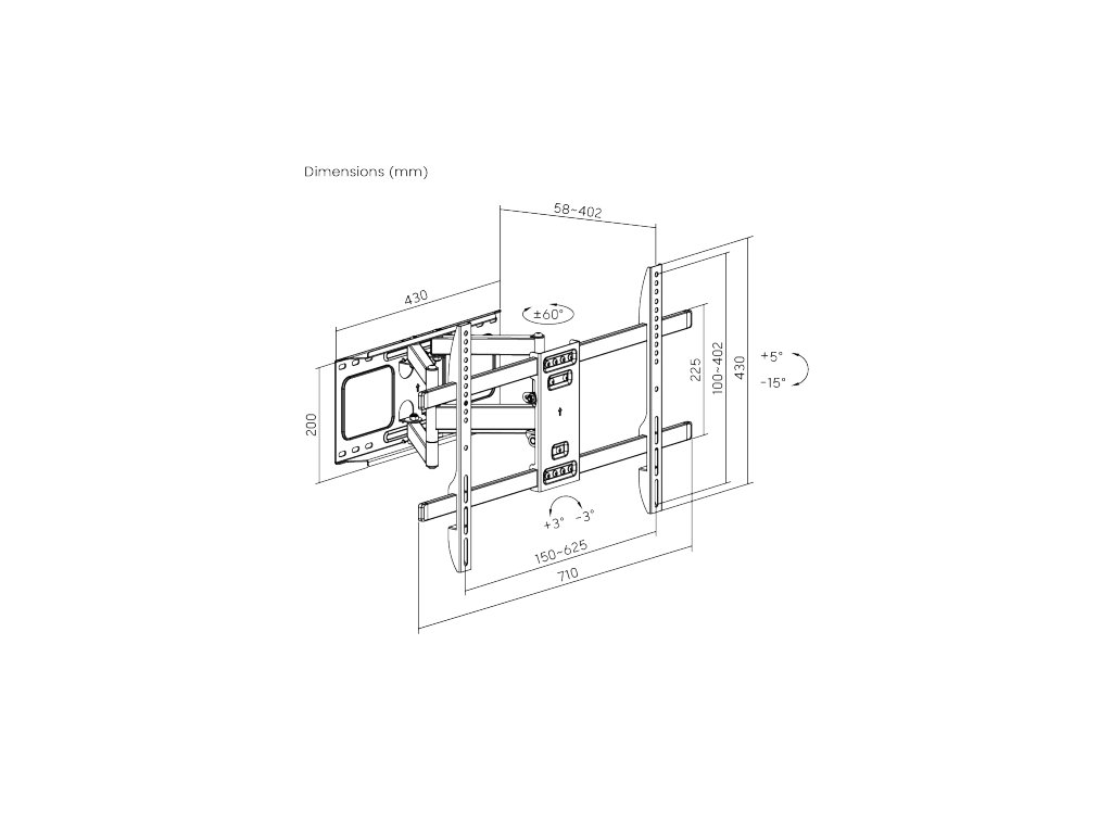 • Výsuvná konstrukce s možností stranového natočení v rozsahu +60°~-60°