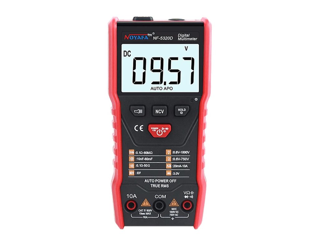 Digitální multimetr NF5320D s podsvíceným LCD, max DC 1000V, max AC 750V, 10A, True RMS a automatický rozsah, odpor do 60 Mohm, kapacita do 30 mF, Max, Min, data hold, zvuková signalizace, vadaska, automatické vypnutí, držákTechnické parametry multimetru NF-5320D: