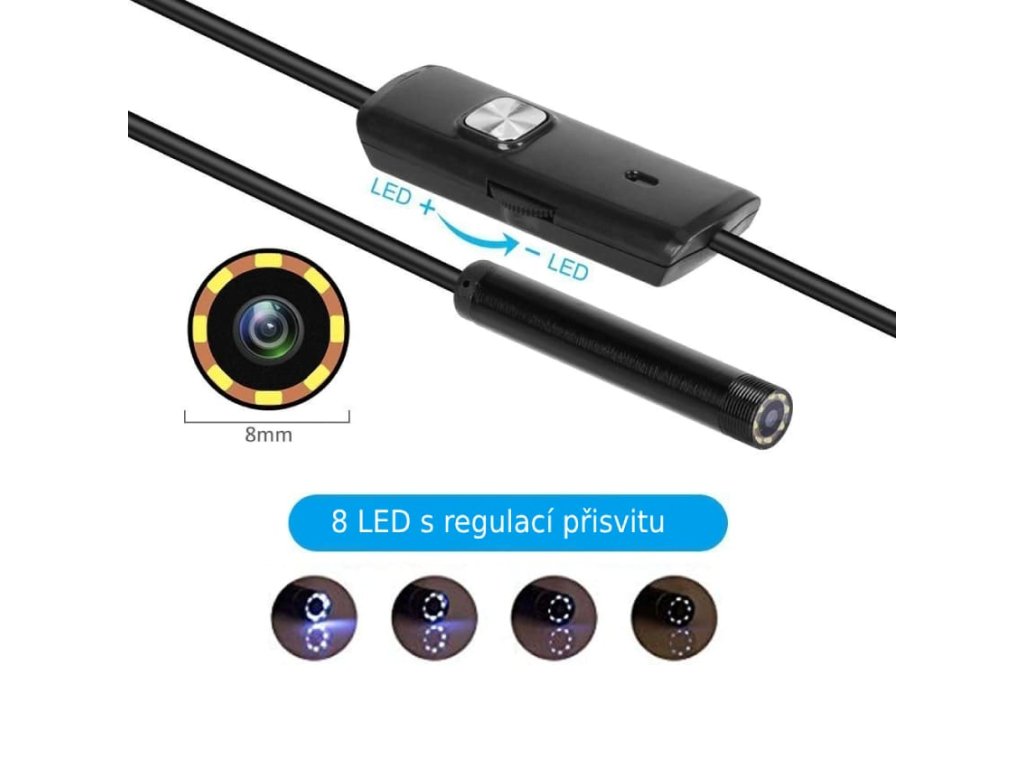 W-Star Endoskopická kamera USB UCAM8x5 sonda 8mm 5m měkký kabel HD konektor 3v1 USBC IP67