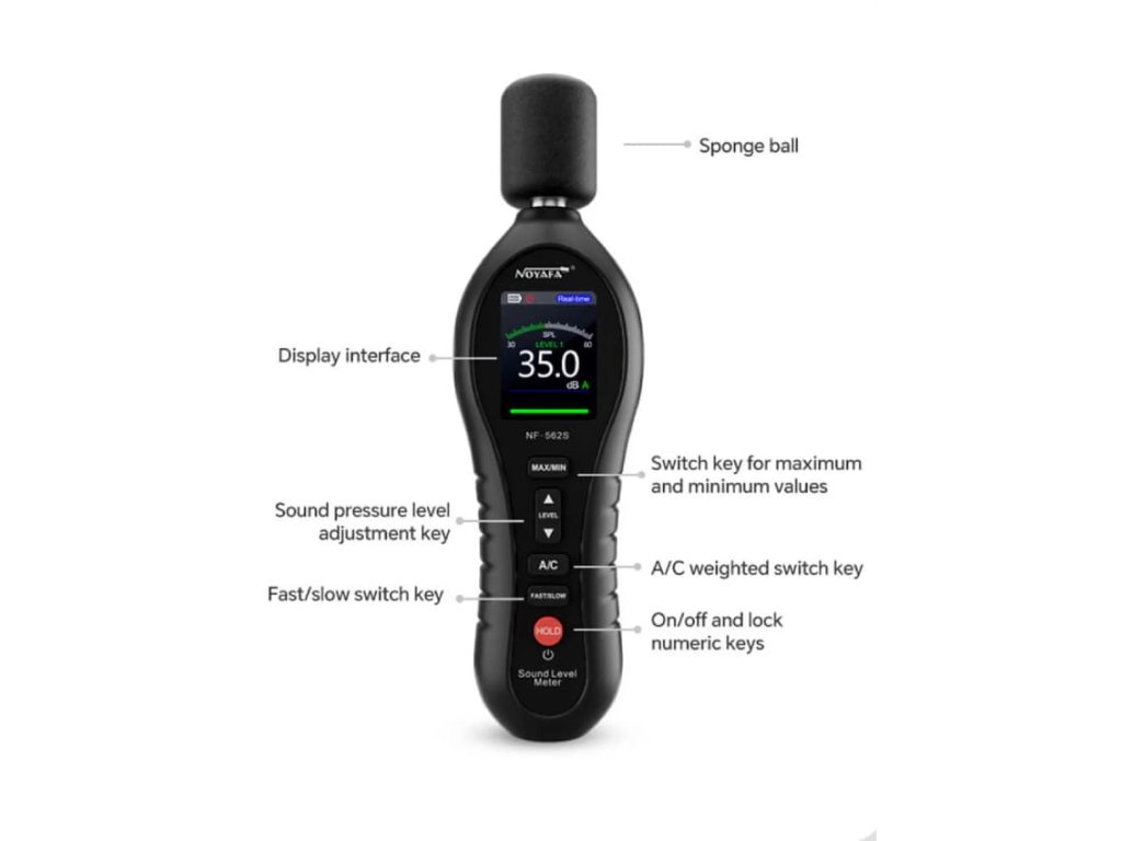 Hlukoměr WSNF562S, dBA, dBC s podsvíceným displejem, ukazatel hodnoty Min, Max, rozsah měření 30-135dB, přesnost 1,5dB, rychlost 125ms, kondenzátorový mikrofon, velice snadné ovládání.TECHNICKÉ PARAMETRY: