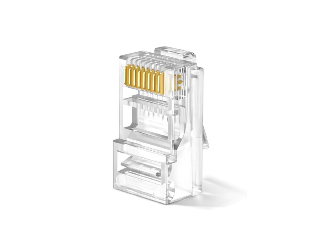Konektor UTP RJ45, krimpovací, na drát i lanko, nestíněný, 8 pozic 8 kontaktů.Výhodné balení 1000ks.