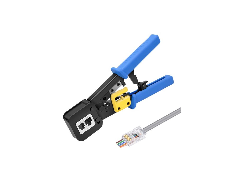 Kleště na síťové konektory typu RJ45EZ, které zjednodušují práci. Drátky vedoucí do konektoru kleště ucvaknou a zarovnají spolu s nacvaknutím konektoru na drát. Cat5e, RJ45, RJ45EZ, RJ12, včetně stíněných konektorů STP.Konektory: EZ Cat5E, Cat5e, rj45, RJ2, 8P8C, 6P6C (průchozí RJ45 konektory)