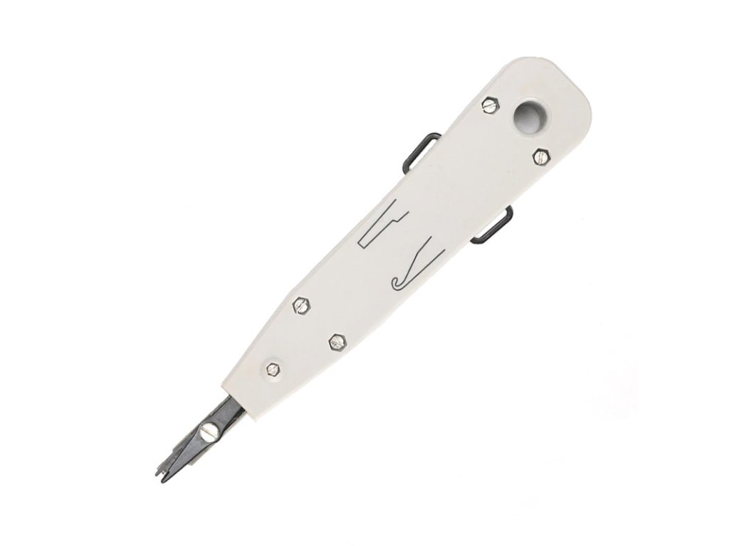 Nařážeč (zářezový nástroj) typu Krone. Nástroj slouží k terminaci- zařezání telefonních drátů do zářezových bloků (UTP zásuvek, patch panelů). Obsahuje i vytahovací háčky pro pohodlnou demontáž vodičů ze zásuvek (panelů).