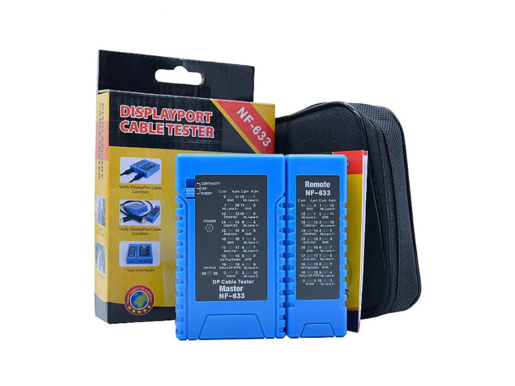 Multi tester kabelů DispayPort WSNF633 slouží k rychlému a spolehlivému testování kabelů DP standard VESA 1.0 a 1.1a s konektory DisplayPort a mini DisplayPort.VASTNOSTI: