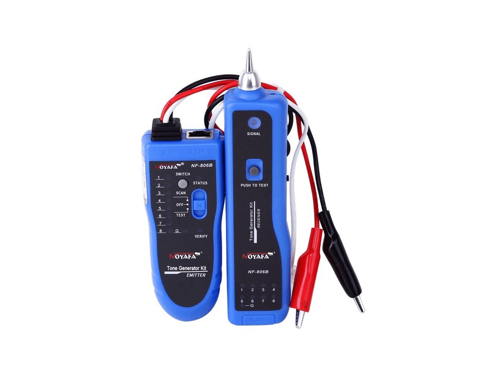 Tester je vhodný pro techniky, kteří se potřebují orientovat v neznámé síťi, vyhledávat kabely ve svazcích nebo testovat jednotlivé kabely. Tester má pokročilé funkce: test kabelů RJ45, překřížení vodičů, zkrat vodičů, přerušení vodičů. Tester je dodáván s pouzdrem, do kterého se vejde testovací jednotka hlavní, vzdálená jednotka(RJ45, RJ11), kabely s krokosvorkami zakončené konektory RJ11. Vyhledávací sonda má kovový hrot a led přísvit pro lepší orientaci v místech s málo světlem.NF-806 Parametry vysílače