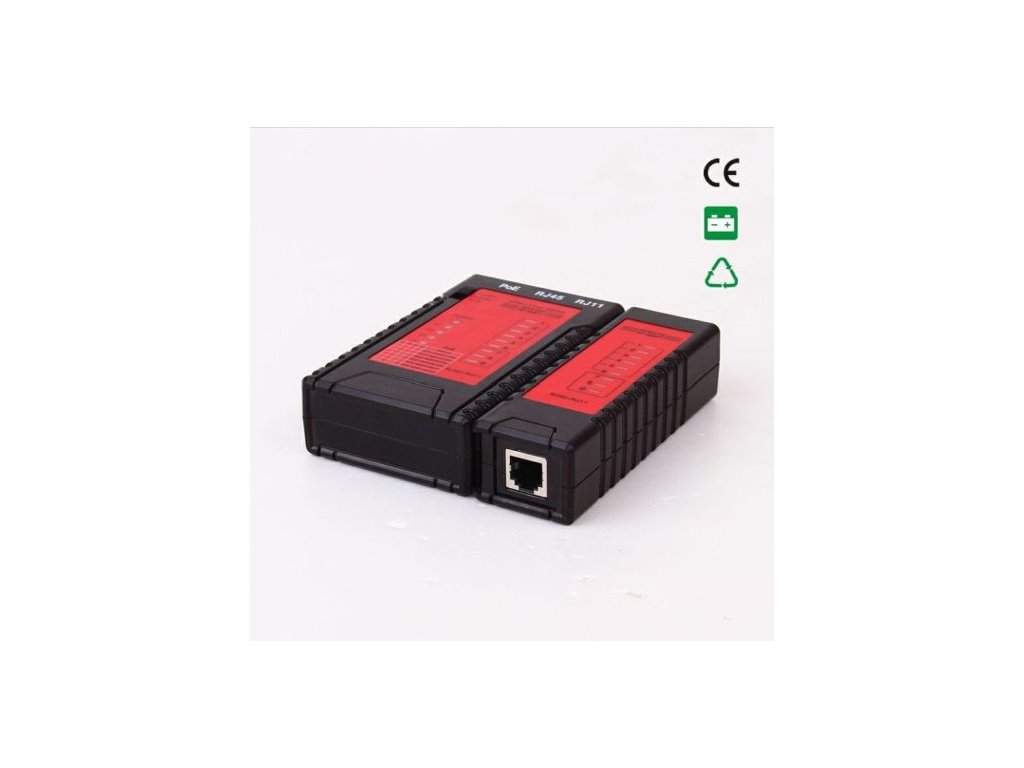 Tester POE napájení podle normy 802.3af, testuje utp kabely.Kombinovaný tester UTP kabelů, telefonních kabelů a kabelů s POE napájením.