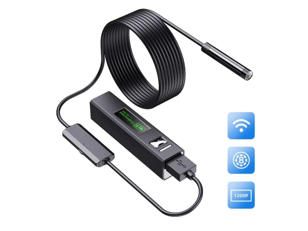 Endoskopická kamera WEF150 5m měkký kabel, 8mm, 8 LED diod, 1200P, HD, 2 Mpix, průmyslová inspekční boroskopická kamera IP67 voděodolná, IPhone, Android, PCParametry: