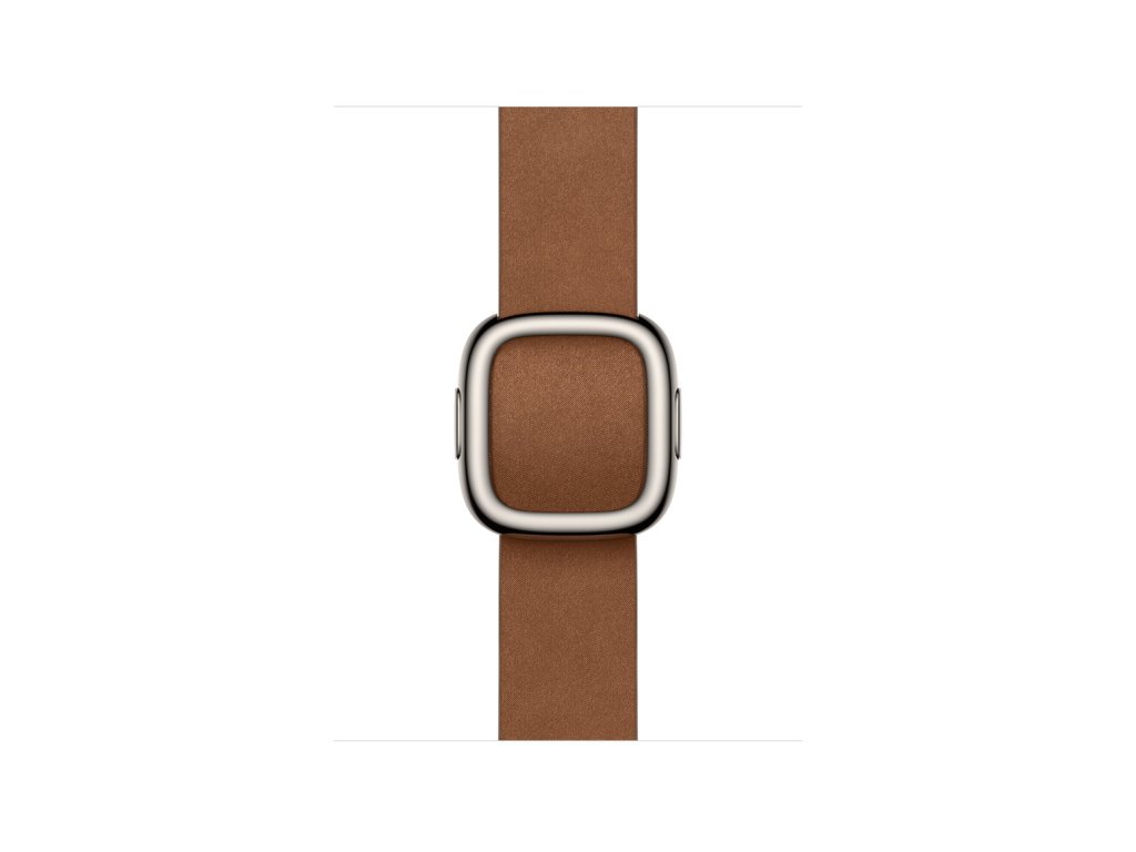 42mm karamelový řemínek s moderní přezkouŘemínek s moderní přezkou je precizně ušitý z tkaniny FineWoven z odolného mikrokepru, který na omak působí jako měkký semiš. I když přezka vypadá masivně, ve skutečnosti jde o dvoudílné magnetické zapínání, které se příjemně zavírá. Přidaná vnitřní vrstva z tkaniny Vectran zvyšuje tuhost a odolnost proti vytahání.