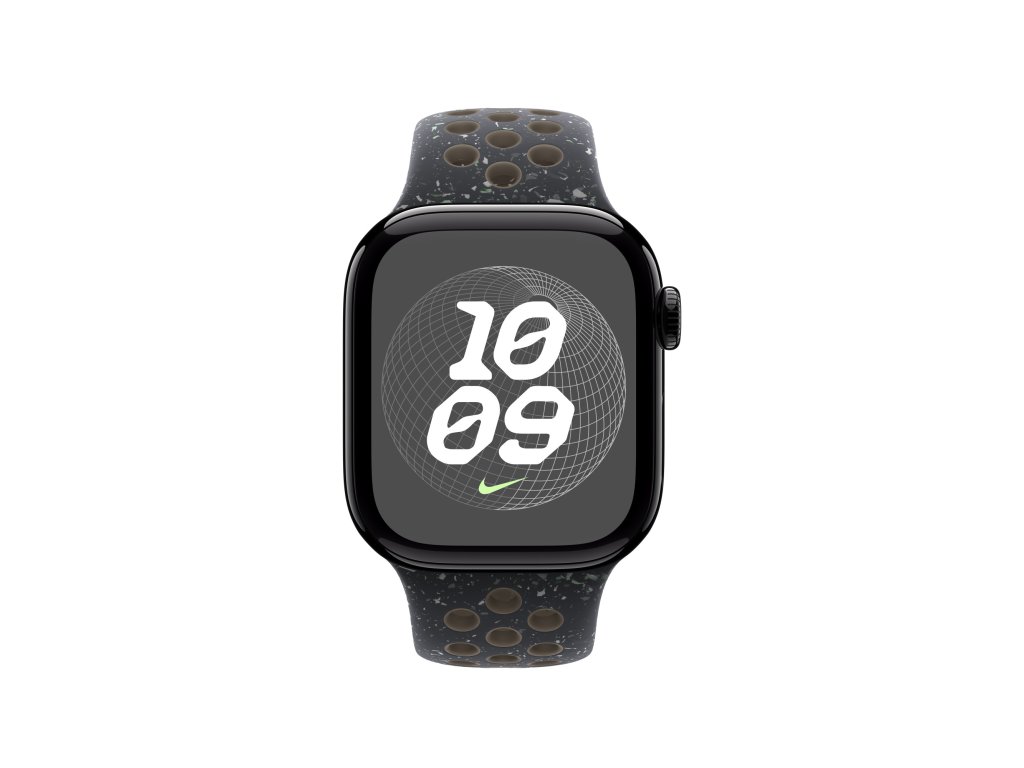 Tenhle sportovní řemínek Nike má vylisované otvory pro větší vzdušnost, je odolný, pevný a přitom krásně poddajný. Obsahuje barevné vločky vytvářející náhodné vzory, takže každý řemínek je originál. Jeho hladký, hutný materiál se elegantně ovine kolem zápěstí a příjemně sedí. A nově se zapíná na hliníkový kolíček s matným povrchem.