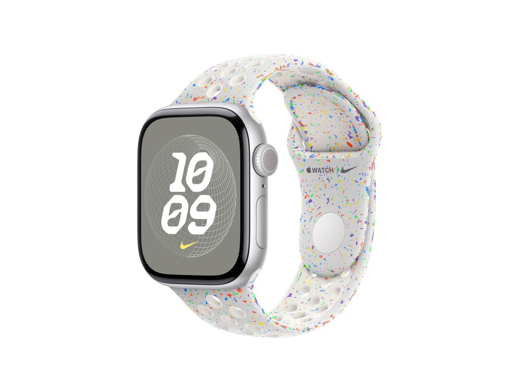 Tenhle sportovní řemínek Nike má vylisované otvory pro větší vzdušnost, je odolný, pevný a přitom krásně poddajný. Obsahuje barevné vločky vytvářející náhodné vzory, takže každý řemínek je originál. Jeho hladký, hutný materiál se elegantně ovine kolem zápěstí a příjemně sedí. A nově se zapíná na hliníkový kolíček s matným povrchem.