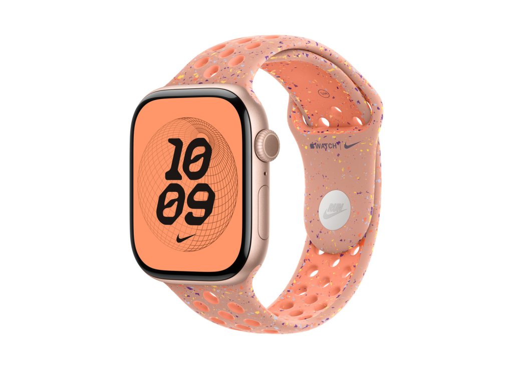 46mm Alpenglow Pink sportovní řemínek NikeTenhle sportovní řemínek Nike má vylisované otvory pro větší vzdušnost, je odolný, pevný a přitom překvapivě poddajný. Obsahuje barevné vločky, které tvoří náhodné vzory, takže každý řemínek je originál. Jeho hladký, hutný materiál se elegantně ovine kolem zápěstí a příjemně sedí. A zapíná se na hliníkový kolíček s matným povrchem, do kterého je pečlivě vygravírované logo Nike Run.