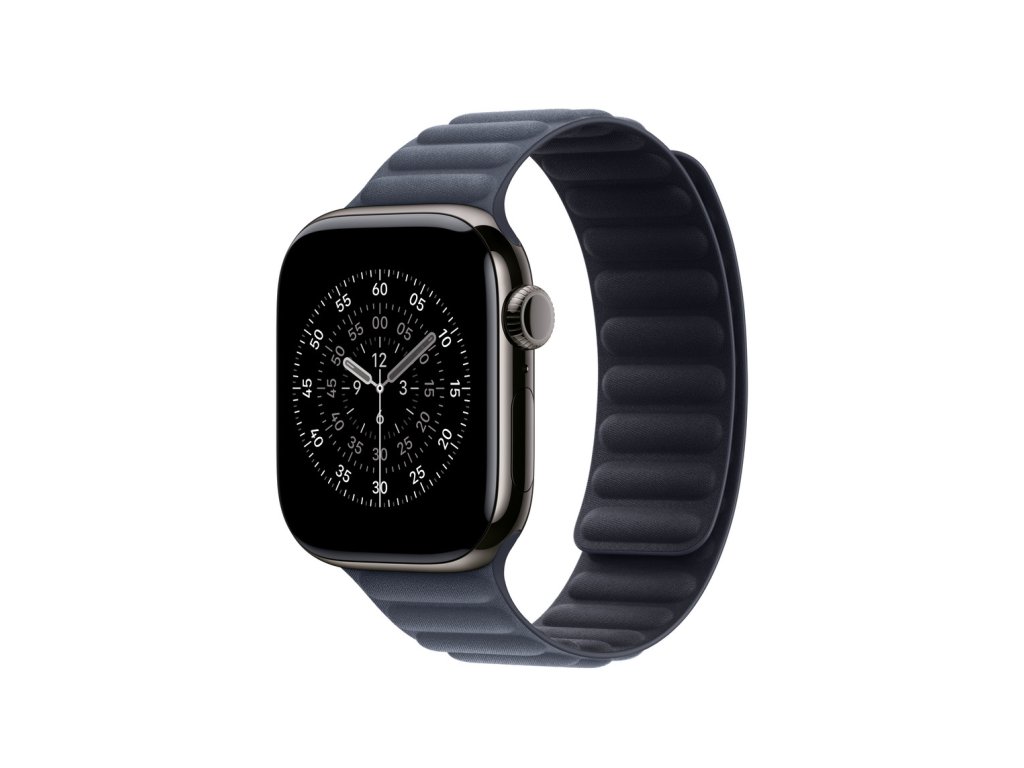 46mm námořnicky modrý magnetický tahMagnetický tah z tkaniny FineWoven, která se vyrábí z odolného mikrokepru, na omak působí jako měkký semiš. Elegantně se ovine kolem zápěstí a hladce se zapne zalisovanými magnety, které se jemně ohýbají, aby řemínek celý den dobře držel a zároveň byl pohodlný.