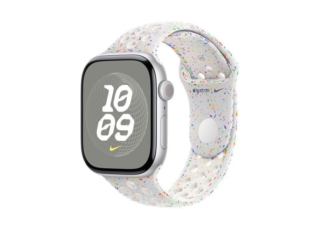Tenhle sportovní řemínek Nike má vylisované otvory pro větší vzdušnost, je odolný, pevný a přitom krásně poddajný. Obsahuje barevné vločky vytvářející náhodné vzory, takže každý řemínek je originál. Jeho hladký, hutný materiál se elegantně ovine kolem zápěstí a příjemně sedí. A nově se zapíná na hliníkový kolíček s matným povrchem.