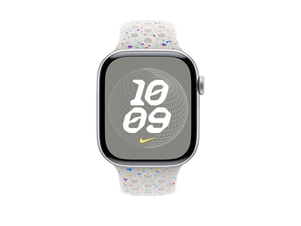 Tenhle sportovní řemínek Nike má vylisované otvory pro větší vzdušnost, je odolný, pevný a přitom krásně poddajný. Obsahuje barevné vločky vytvářející náhodné vzory, takže každý řemínek je originál. Jeho hladký, hutný materiál se elegantně ovine kolem zápěstí a příjemně sedí. A nově se zapíná na hliníkový kolíček s matným povrchem.