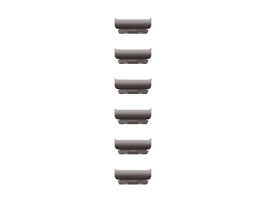 Apple 46mm sada článkového tahuČlánky vyrobené ze slitiny nerezové oceli prodlouží tvůj 46mm nerezový článkový tah o dalších 40 mm. A díky jednoduchému uvolňovacímu tlačítku nepotřebuješ k přidávání a odebírání článků žádné speciální nástroje.