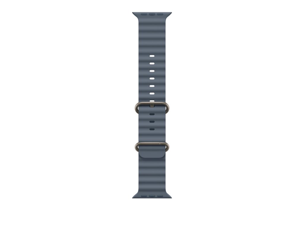 49mm ocelově modrý Oceánský řemínek – provedení z přírodního titanuOceánský řemínek je lisovaný z vysoce funkčního elastomeru a má trubicovitou strukturu, takže se dá napnout, aby perfektně seděl i přes neopren. Díky titanové přezce a nastavitelnému poutku, které jsou přirozeně odolné proti korozi, se při vysokorychlostních vodních sportech ani nehne.