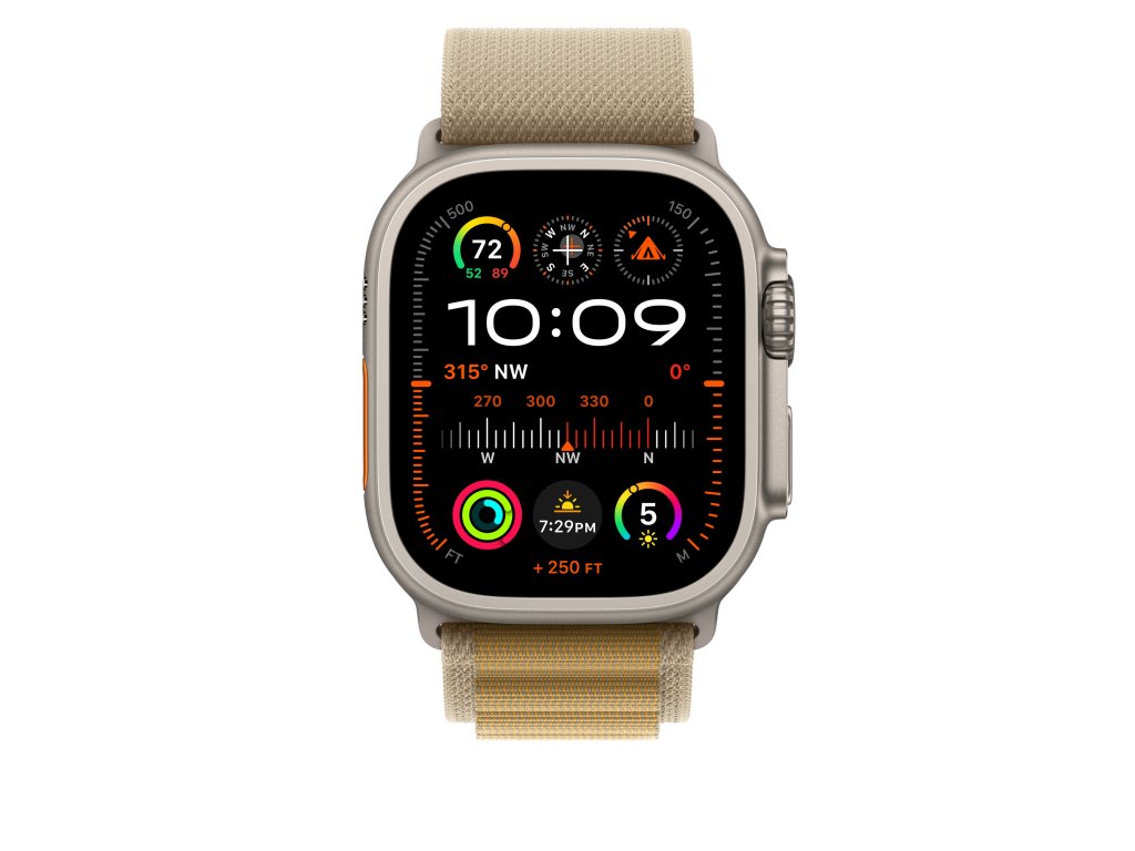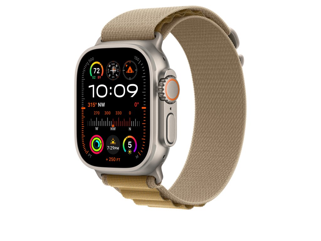 Apple 49mm Alpský tah – velký – provedení z přírodního titanuHouževnatý Alpský tah je vyrobený ze dvou textilních vrstev tkaných jako jeden souvislý celek bez jakýchkoli stehů. Svrchní poutka jsou zpevněná vysokopevnostní přízí a titanová spona ve tvaru písmene G do nich snadno vklouzne a spolehlivě drží.