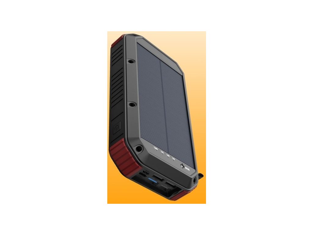Ke svému nabíjení používá jak vstup USB mini, tak solární energii, integrovaný panel dokáže nabít přes 2000mAh za den, stačí zavěsit na rám, na batoh a podobně. Snadné intuitivní ovládání a manipulace. PRO series outdoor cool-in design. Vynikající pro použití s GPS, iPhone, iPad, iPod, PDA, digitální kamery, MP3, MP4 či PSP atd. Základ výbavy pro geocaching + zabudovaná pohotovostní výkonná 18 x POWER LED svítilna