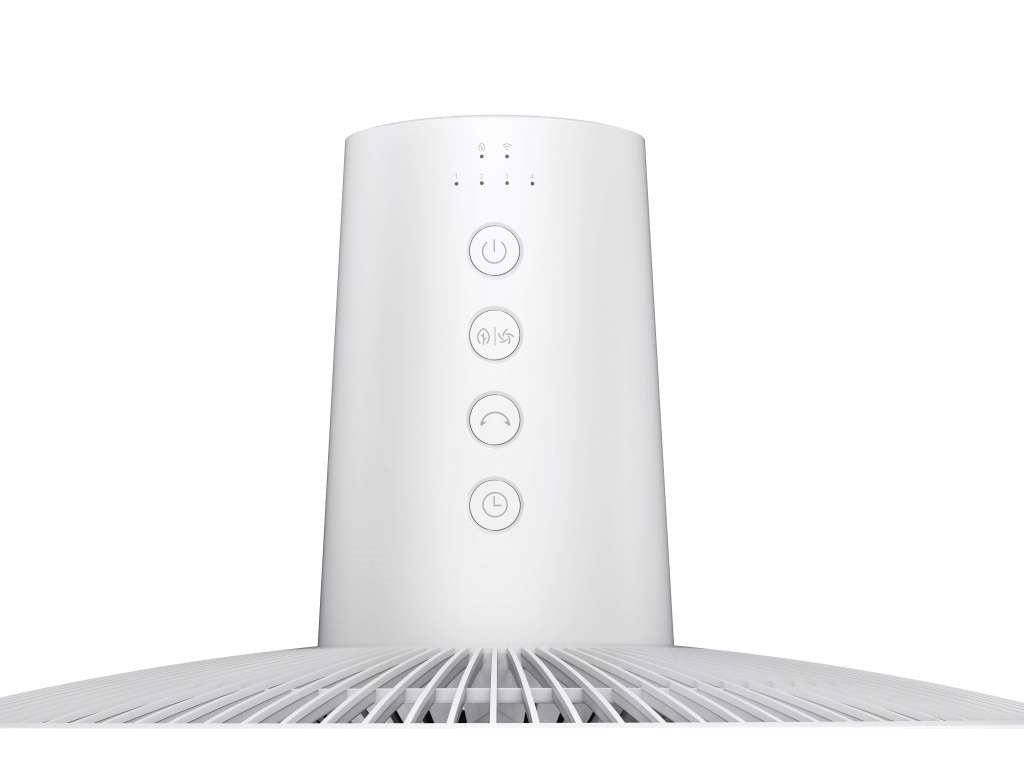 Chytrý ventilátor má tenčí elegantní design a je výškově nastavitelný (625–1000 mm). Ventilátor lze použít i na stůl nebo jako stojan na podlahu. Široká oscilace až 140° a až 39° náklon hlavy pro rozptyl vzduchu do celé oblasti. Chytrý ventilátor lze ovládat i přes mobilní aplikaci, kde je až 100 režimů rychlosti ventilátoru.