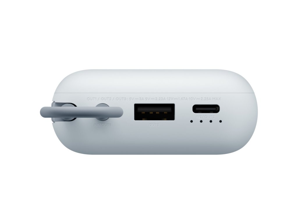 Je vybaven nabíjecím kabelem typu C, portem typu C a portem USB-A, z nichž každý podporuje jeden port s výstupním výkonem 22,5 W pro nabíjení tří zařízení současně.