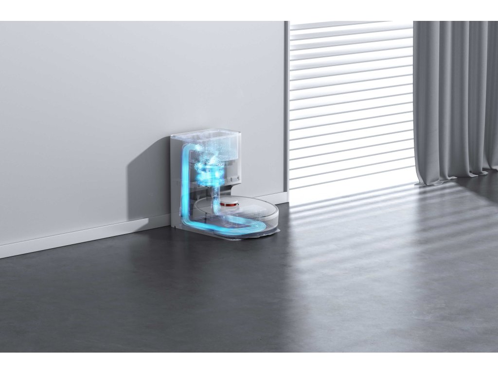 Dvoukanálová konstrukce sběru prachu v základně s výkonným sáním 17 000 Pa vyprázdní nádobu na prach okamžitě. Vestavěný prachový sáček dokáže sbírat a vyprazdňovat prach více než 60krát a při jeho zvednutí se automaticky uzavře, takže nezasypete prachem sebe ani své okolí.