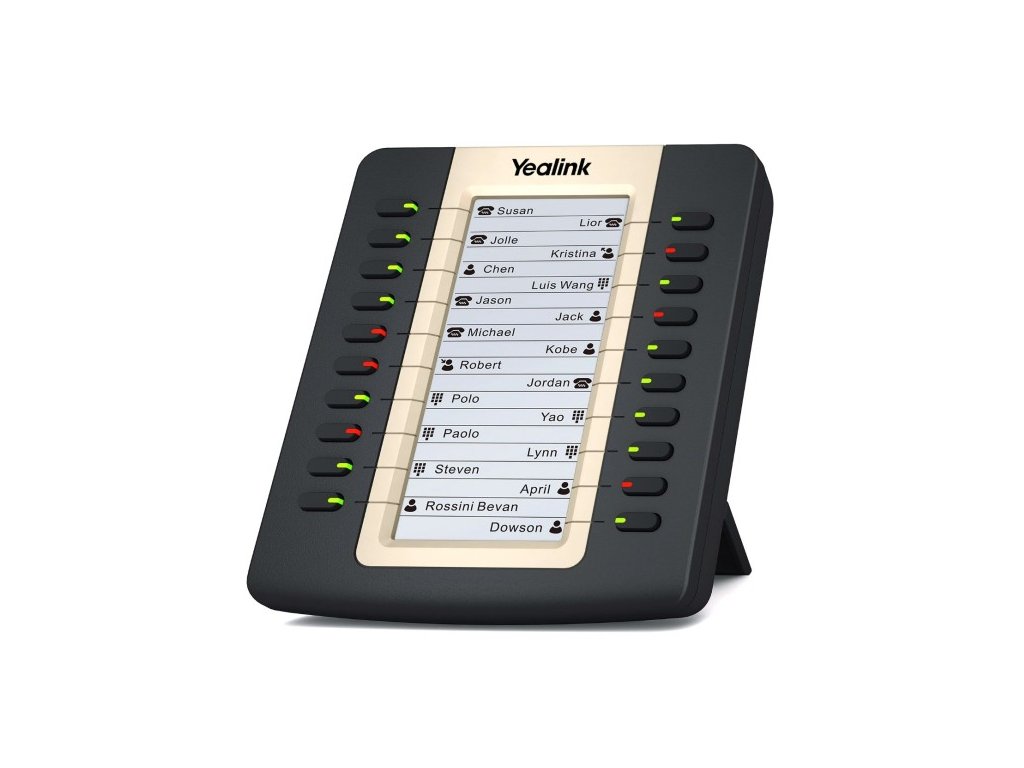 Rozšiřující modul pro telefony Yealink T27P a T29G.Je vybaven 20 podsvícenými tlačítky a dalšími 18 programovatelnými. Velký počet tlačítek zjednodušuje orientaci uživatele a zefektivňuje základní provozní funkce, např. rychlé vytáčení, přesměrování hovorů nebo BLF/BLA.