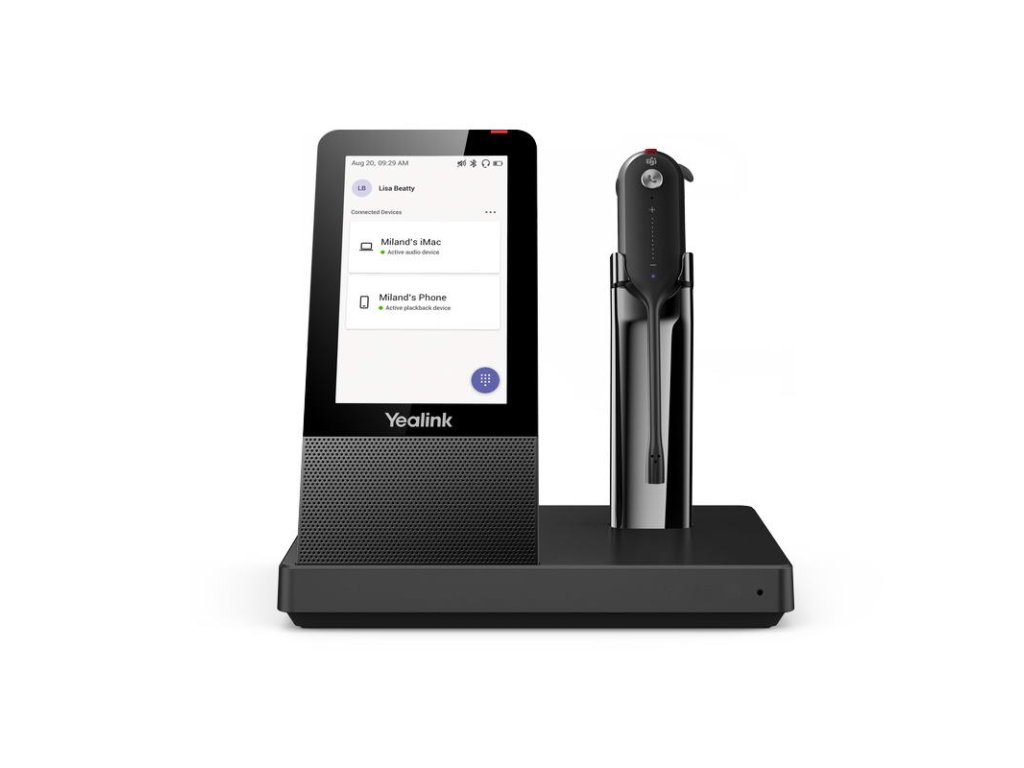 Yealink WH67 DECT základna s dotykovým LCD a s náhlavní soupravou do jednoho ucha pro Teams