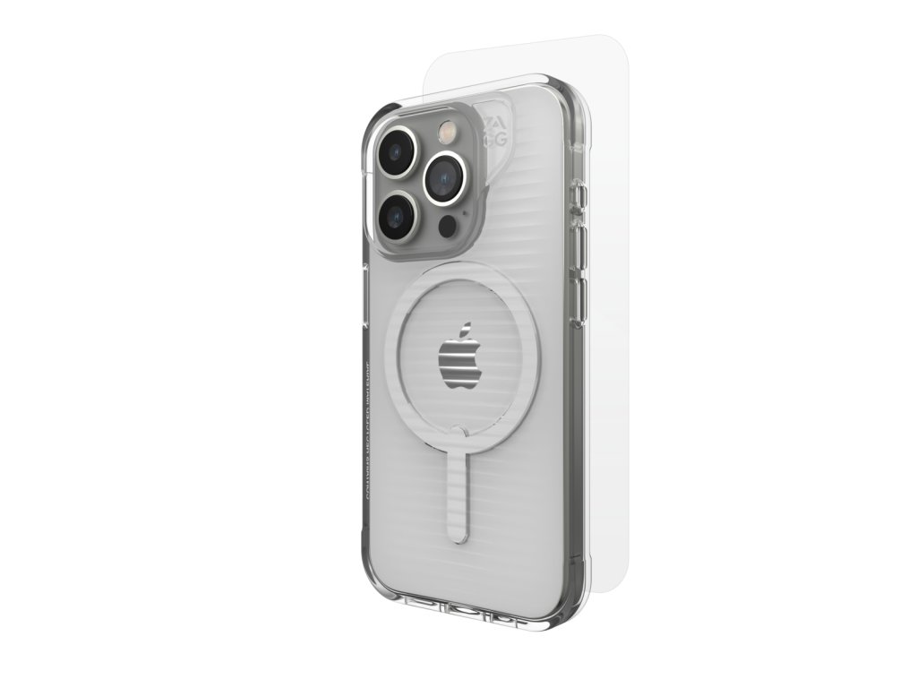 Set ochranného krytu kompatibilního s MagSafe a ochranného skla. Vyroben z 95 % recyklovaných materiálů. Pro maximální odolnost byl zesílen grafenem, jedním z nejpevnějších známých materiálů na Zemi. Zařízení ochrání při pádech z výšky až 3 metrů.Grafen je materiál, který je tvrdší než diamant, pružnější než guma a přibližně 200× pevnější než ocel. Grafen je vysoce vodivý, díky čemu umožňuje odvod tepla. Tento materiál je využíván v letectví, kosmonautice, při výrobě profesionálního sportovního a vojenského vybavení atd.