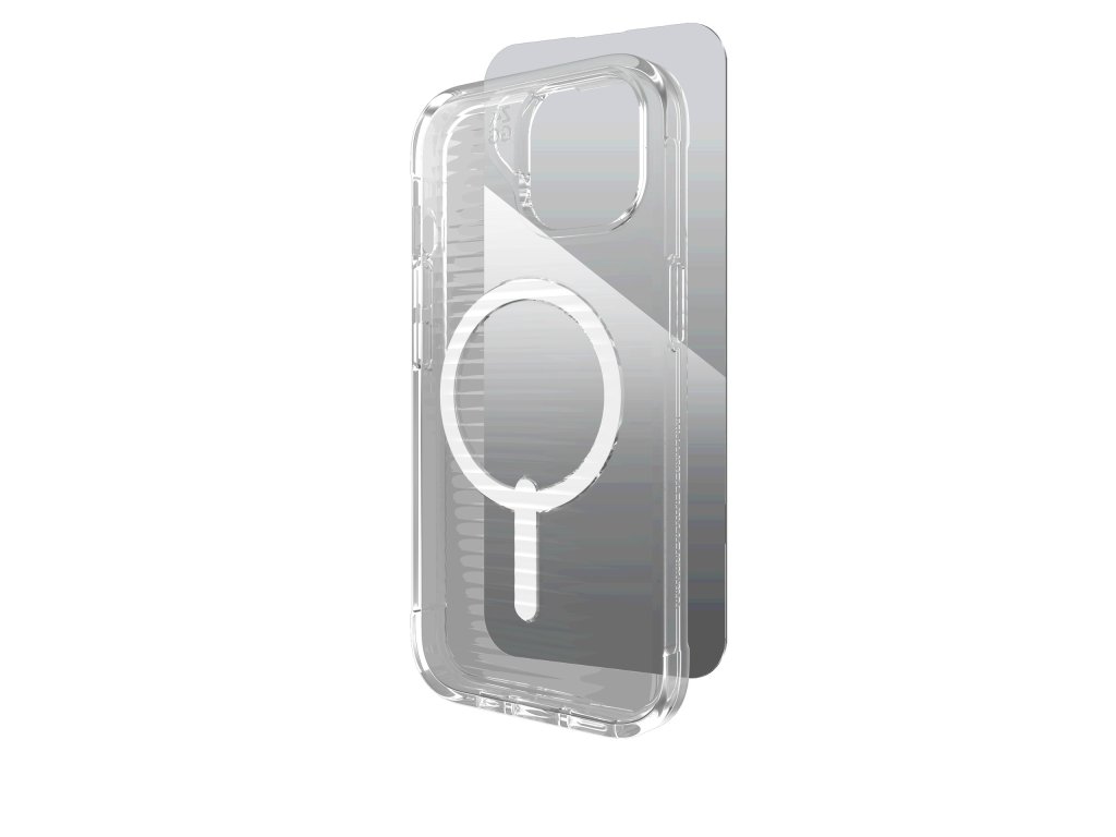 Set ochranného krytu kompatibilního s MagSafe a ochranného skla. Vyroben z 95 % recyklovaných materiálů. Pro maximální odolnost byl zesílen grafenem, jedním z nejpevnějších známých materiálů na Zemi. Zařízení ochrání při pádech z výšky až 3 metrů.Grafen je materiál, který je tvrdší než diamant, pružnější než guma a přibližně 200× pevnější než ocel. Grafen je vysoce vodivý, díky čemu umožňuje odvod tepla. Tento materiál je využíván v letectví, kosmonautice, při výrobě profesionálního sportovního a vojenského vybavení atd.
