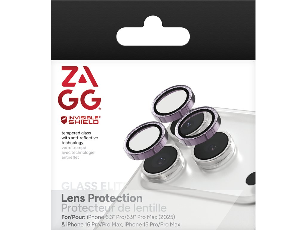 ZAGG Ochranná čočka Premium pro Apple 17 Pro/Pro Max/16 Pro/Pro Max/15 Pro/Pro Max - fialová třpytka
