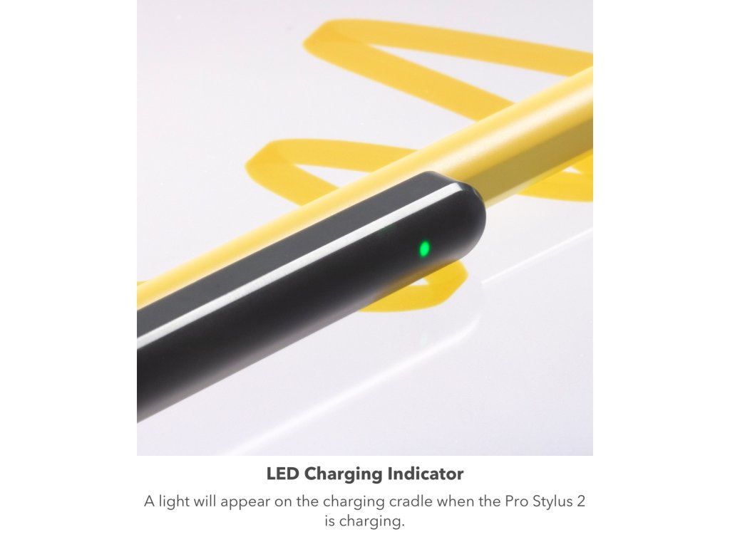 Součástí balení je bezdrátová nabíječka s LED indikátorem nabíjení. Stylus lze pohodlně nabíjet pomocí jakékoliv bezdrátové Qi nabíječky nebo pomocí iPadu Pro. Baterie vydrží až šest a půl hodiny na jedno nabití.