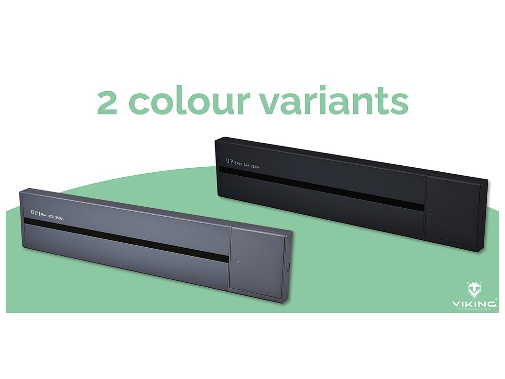 Povrchová zásuvková lišta Viking LP60 má délku 60 cm, umožňuje připojení až 7 zásuvkových modulů a je k dispozici ve dvou barevných variantách.