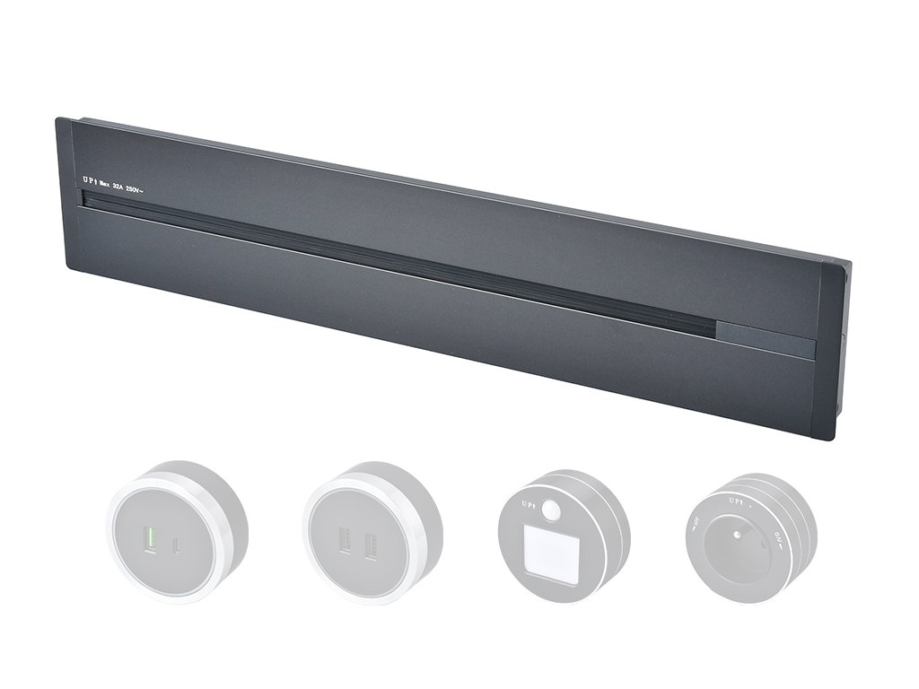 Zásuvková lišta - zápustná montáž • kompaktní rozměry 8 x 2 x 40 cm • připojení až 5 zásuvkových modulů • napájení 230V, 50Hz • ideální pro domácí i kancelářské využití • jmenovitý proud 32 A • robustní hliníková slitina • jmenovitý výkon 8000 W • ochrana IP20 • izolační napětí 500V • snadná manipulace a individuální uspořádání modulů v zásuvkové liště"Váš prostor, váš styl, vaše zásuvky - vždy podle vašich představ a nálady!"