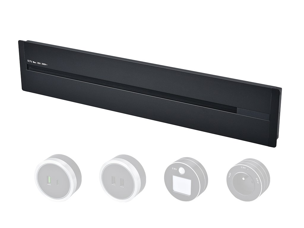 Zásuvková lišta - zápustná montáž • kompaktní rozměry 8 x 2 x 60 cm • připojení až 7 zásuvkových modulů • napájení 230V, 50Hz • ideální pro domácí i kancelářské využití • jmenovitý proud 32 A • robustní hliníková slitina • jmenovitý výkon 8000 W • ochrana IP20 • izolační napětí 500V • snadná manipulace a individuální uspořádání modulů v zásuvkové liště"Váš prostor, váš styl, vaše zásuvky - vždy podle vašich představ a nálady!"