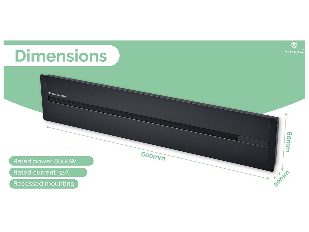 Zásuvková lišta - zápustná montáž • kompaktní rozměry 8 x 2 x 60 cm • připojení až 7 zásuvkových modulů • napájení 230V, 50Hz • ideální pro domácí i kancelářské využití • jmenovitý proud 32 A • robustní hliníková slitina • jmenovitý výkon 8000 W • ochrana IP20 • izolační napětí 500V • snadná manipulace a individuální uspořádání modulů v zásuvkové liště"Váš prostor, váš styl, vaše zásuvky - vždy podle vašich představ a nálady!"
