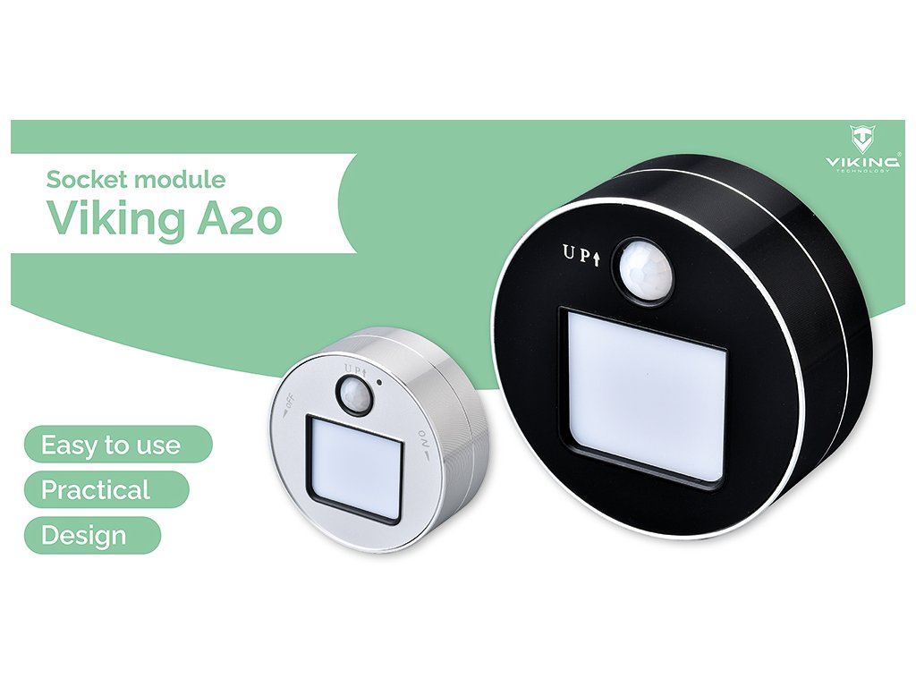 Zásuvkový modul Viking A20 je vybaven LED světlem s pohybovým senzorem a je k dispozici ve dvou barevných variantách.