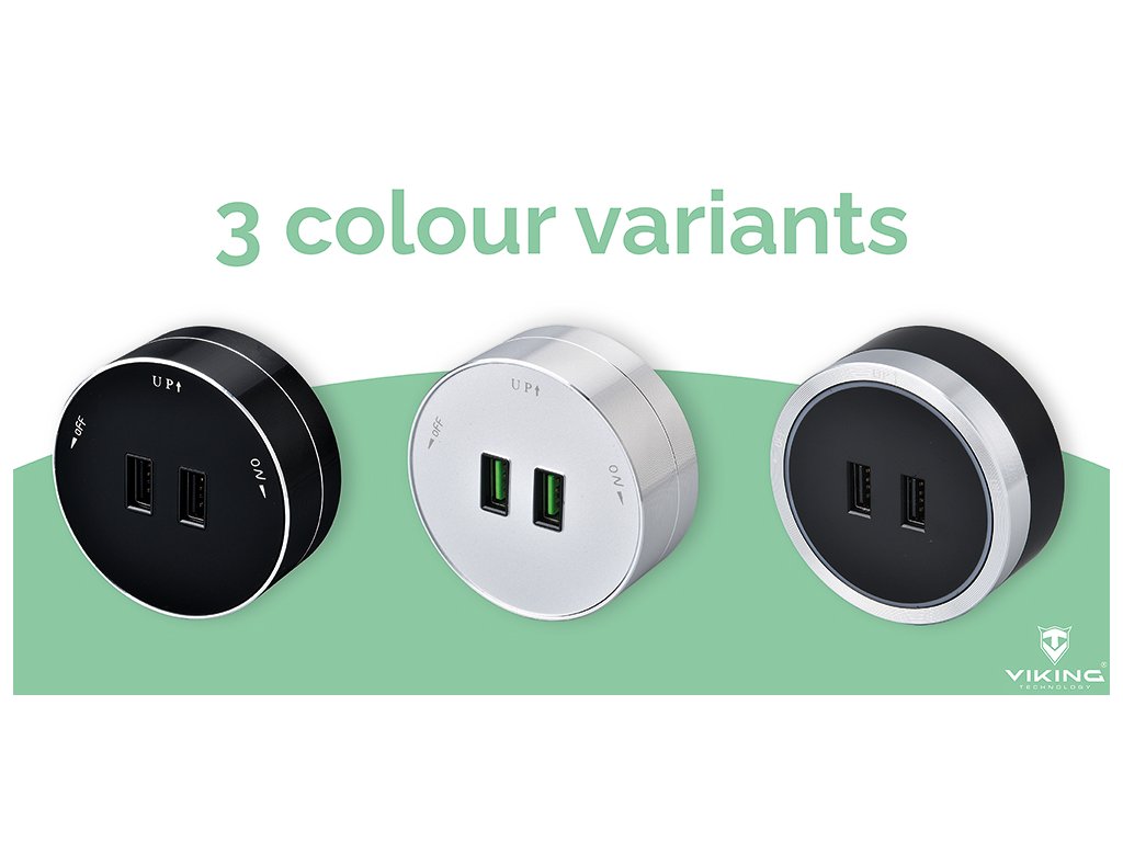 Zásuvkový modul Viking A50S je vybaven USB-A (2x) výstupy 5V/2,4A.